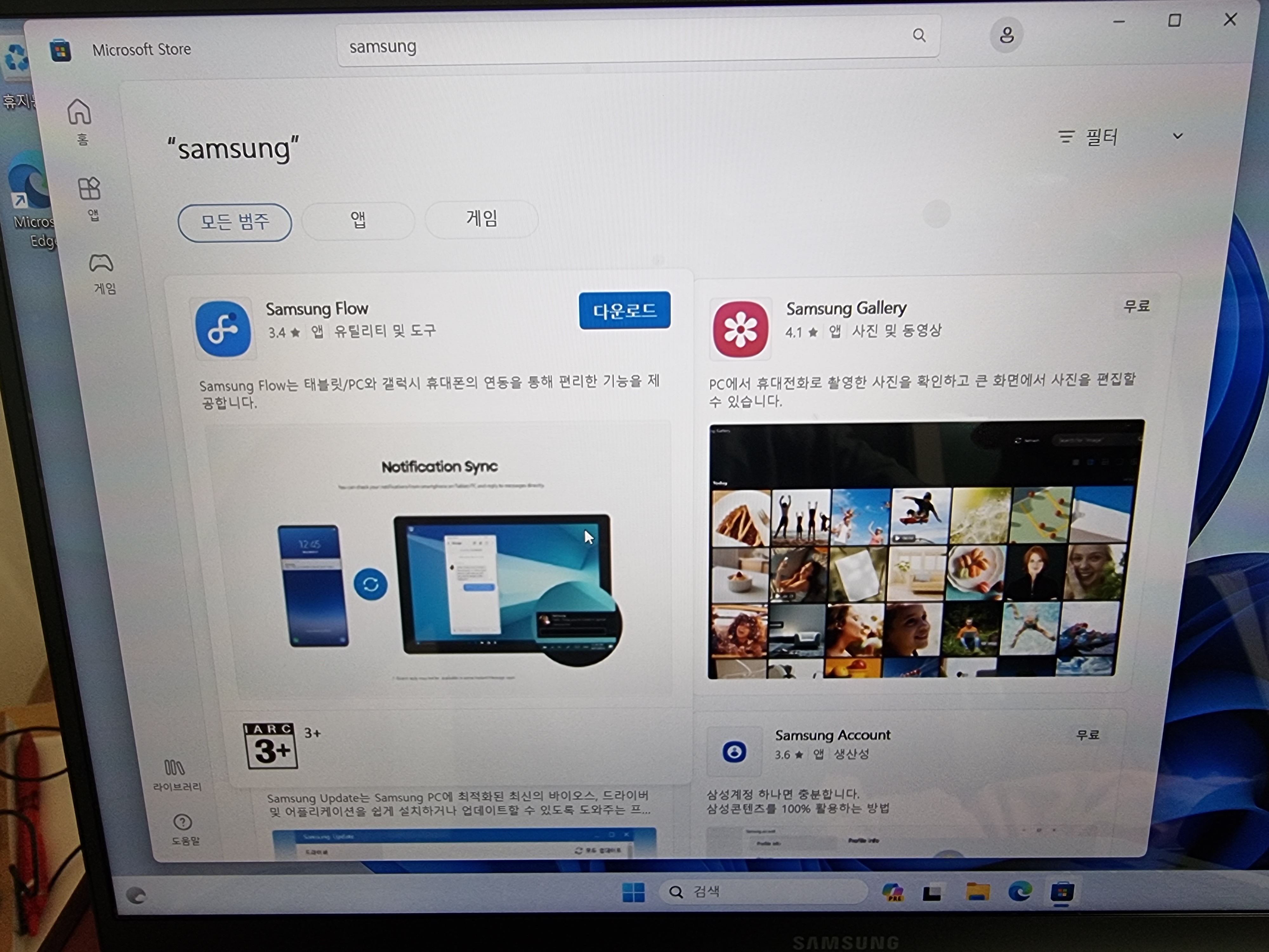 프리도스 상태에서, 윈도우 설치했습니다. 스토어에서 삼성 앱 - 삼성업데이트, 삼성플로우, 갤러리, 리커버리 등등 찾아서 설치했습니다. 필요한 앱은 모두 찾아서 사용할 수 있어서 좋았습니다.